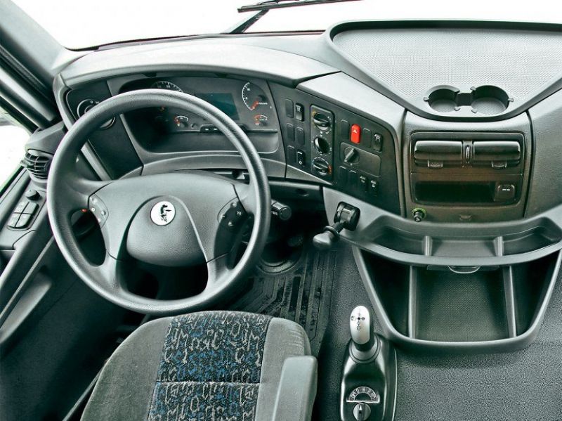 Если услышите, что КамАЗ-5490 – это «Мерседес-Бенц Аксор», но собранный в Татарстане, не верьте. Это разные машины, хотя у них много схожих агрегатов. Впервые на КамАЗе появилась удобная и просторная кабина. Ширина снаружи — 2300 мм (без учета зеркал и крыльев), длина — 2250 мм, внутренняя высота от пола до потолка — 1510 мм (вариант с низкой крышей). В числе приоритетных разработок Камского автозавода – создание магистральных седельных тягачей для автопоездов европейской схемы: двухосный тягач и трехосный полуприцеп (сцепка полной массой 40–44 т и длиной 16,5 м). Премьерный показ такого КамАЗа-5490 состоялся на выставке «Комтранс» 2011 года. В начале 2014-го автомобиль поставили на конвейер. -Если услышите, что КамАЗ-5490 – это «Мерседес-Бенц Аксор», но собранный в Татарстане, не верьте. Это разные машины, хотя у них много схожих агрегатов. Да и территориально производства разведены. Камазовский тягач собирают на модернизированном главном конвейере КамАЗа, к стволу которого теперь приросла еще одна ветка, а челнинский «Мерседес-Бенц Аксор» собирают в технопарке «Мастер», на производственной площадке ОАО «Мерседес-Бенц Тракс Восток»- Сиденье «Граммер» елабужской сборки – с массой настроек. Работать на нем комфортно, поскольку оно крепится на регулируемой пневмоподвеске. Ничего страшного, что КамАЗу досталась кабина от «Аксора», выпускаемого аж с 2001 года. На фоне привычной отечественной она – словно из будущего. С ней хорошо поработали камские инженеры, а дизайнеры умудрились придать довольно заурядной внешности немецкого грузовика для межрегиональных перевозок статность полноценного флагманского тягача. У кабины КамАЗ-5490 оригинальные нижняя панель решетки радиатора, бампер, подножки, крылья. Материал – не подверженная коррозии пластмасса, высококачественная и прочная. Бампер и подножки смонтированы выше, чем у «Мерседеса». Немецкая кабина крепится к раме на пружинных стойках, а наша – на четырехточечной пневмоподвеске, более мягкой. Сзади два спальных места. Вход свободный. Ширина нижней полки — 685 мм, а верхней – 700 мм. Здесь можно комфортно вытянуться даже при двухметровом росте. Светотехника своя. В серию пошел вариант с маленькими линзованными фарами «Хелла» и светодиодными указателями поворотов и габаритными огнями. Чуть позже появятся прямоугольные блок-фары не хуже по дизайну и сиянию, чем у добротных иномарок. Кабину сваривают (из импортной штамповки), окрашивают и собирают у нас. Роскошные кресла везут из Елабуги. Там обосновалось известное немецкое предприятие «Граммер» (Grammer). Все прочие детали интерьера ничем не отличаются от тех, что на чистопородном «Аксоре», – их доставляют из-за рубежа. В МОТОРНОМ ОТСЕКЕ Другое важное стратегическое направление развития новой гаммы – применение импортных двигателей, хотя свое производство дизелей на КамАЗе сворачивать не собираются: родные моторы будут модернизировать еще глубже. КамАЗ-5490 образует новое семейство грузовиков из Набережных Челнов. Это, в первую очередь, магистральные тягачи с полуприцепом, следом за ними пойдут шасси с надстройками. Пока на седельные тягачи КамАЗ-5490 устанавливают известные в России рядные «шестерки» «Мерседес-Бенц OM 457 LA» рабочим объемом 11,97 л. Их собирают на моторном заводе концерна «Даймлер» в Мангейме. Немецкий турбодизель весьма экономичен, заяв